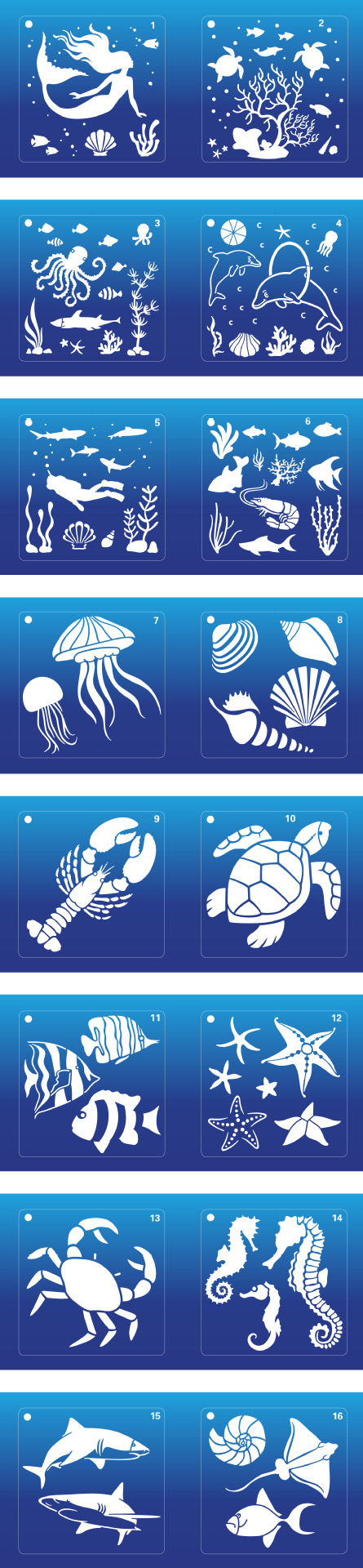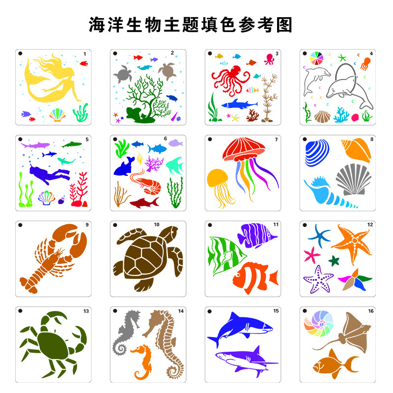 16 in 1 Kaart DIY Album Masking Spray Geschilderd Template Tekening Stencils Schilderen Scrapbooking Card Oceaan