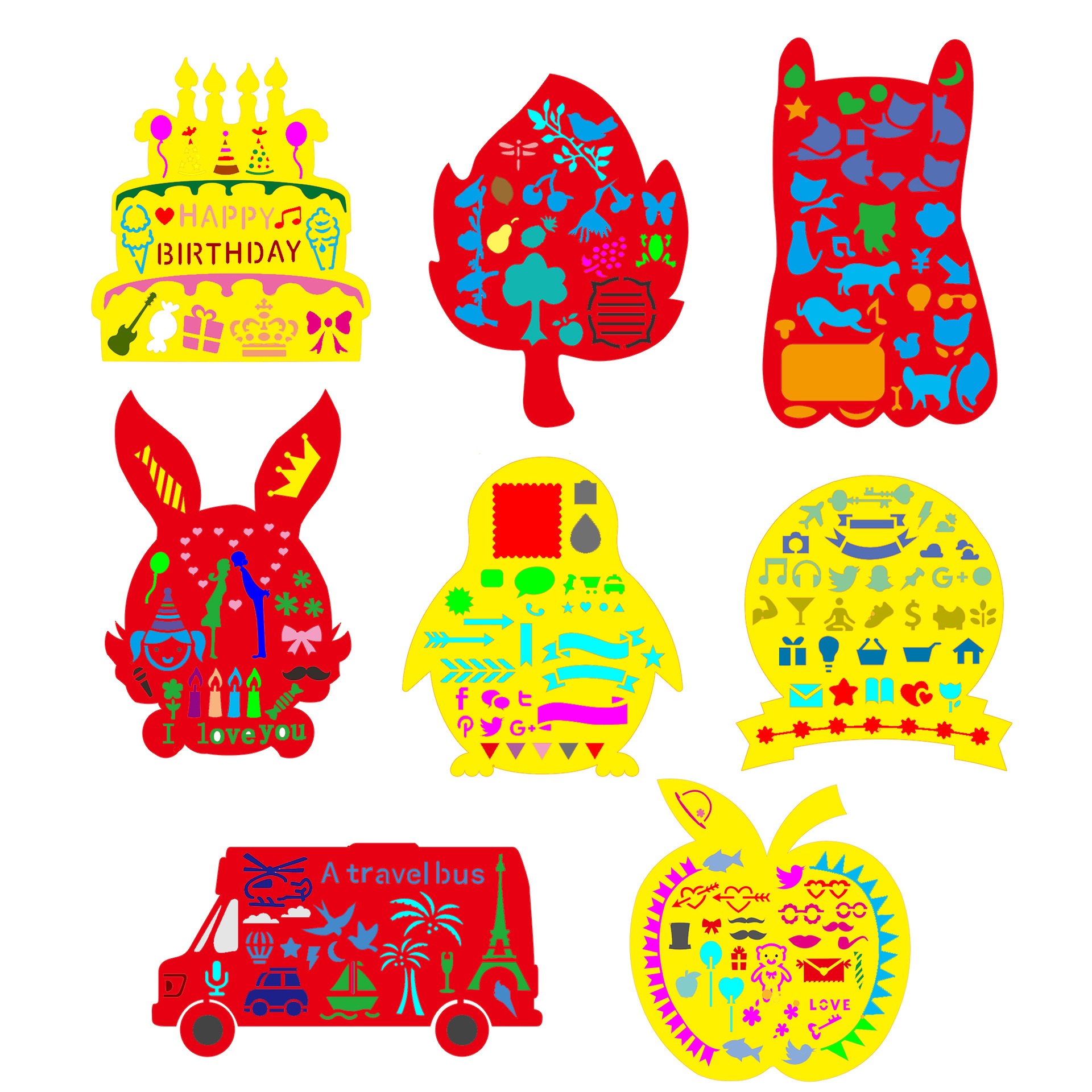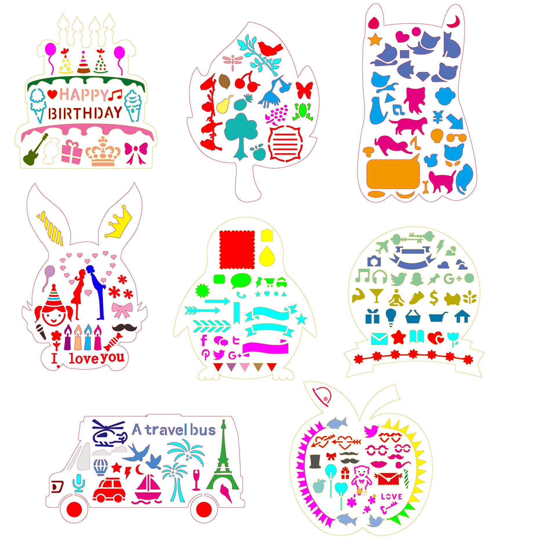 8 in1 kleurrijk Scrapbooking Tool Kaart DIY Album Masking Spray Geschilderd Template Tekening Stencils Laser Cut Template Schilderen Scrapbooking Embossing Stempelen Card.