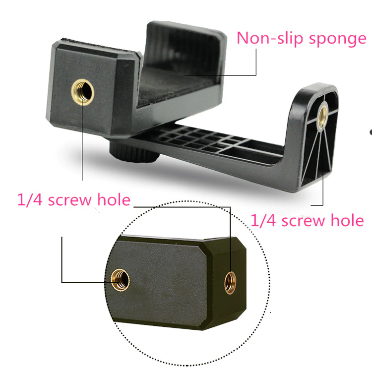 Er is een standaard statief interface, 1/4 inch statief schroefdraad (Opmerking: de interface materiaal is een nieuwe koperen moer), de interface kan worden aangesloten met een statief of quick release plaat en selfie stok, natuurlijk, kan ook gebruikt worden op de stabilisator.