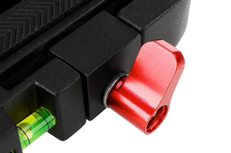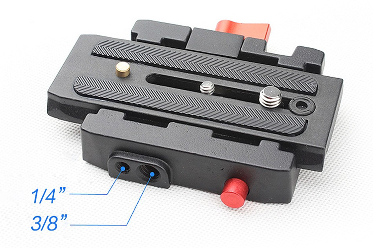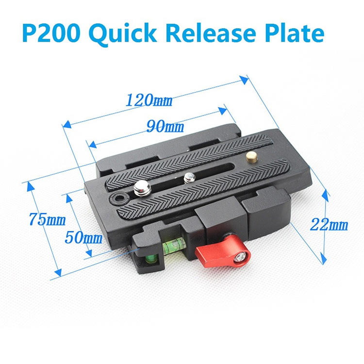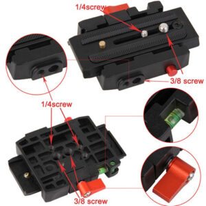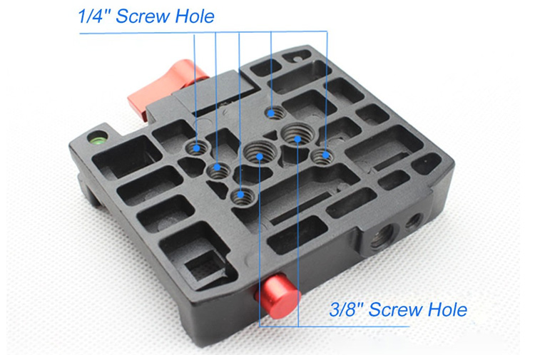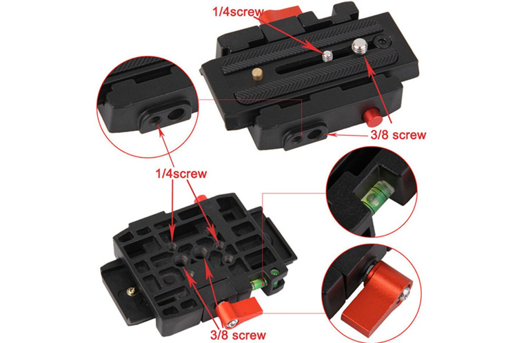 Item Detail: Inclusief 1/4 Schroef, 1/8 Schroef, antislip button, antislip Rubber Mat, vergrendeling Handvat voor Quick Release Plaat, twee-weg Waterpas, 1/4 Schroef en 1/8 Schroefgaten.