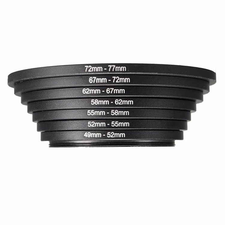 U kunt ook 2 of meer adapters combineren, bijvoorbeeld 49-52 en 52-55 adapters combineren, u kunt een 55mm filter of zonnekap op uw 49mm lens gebruiken.