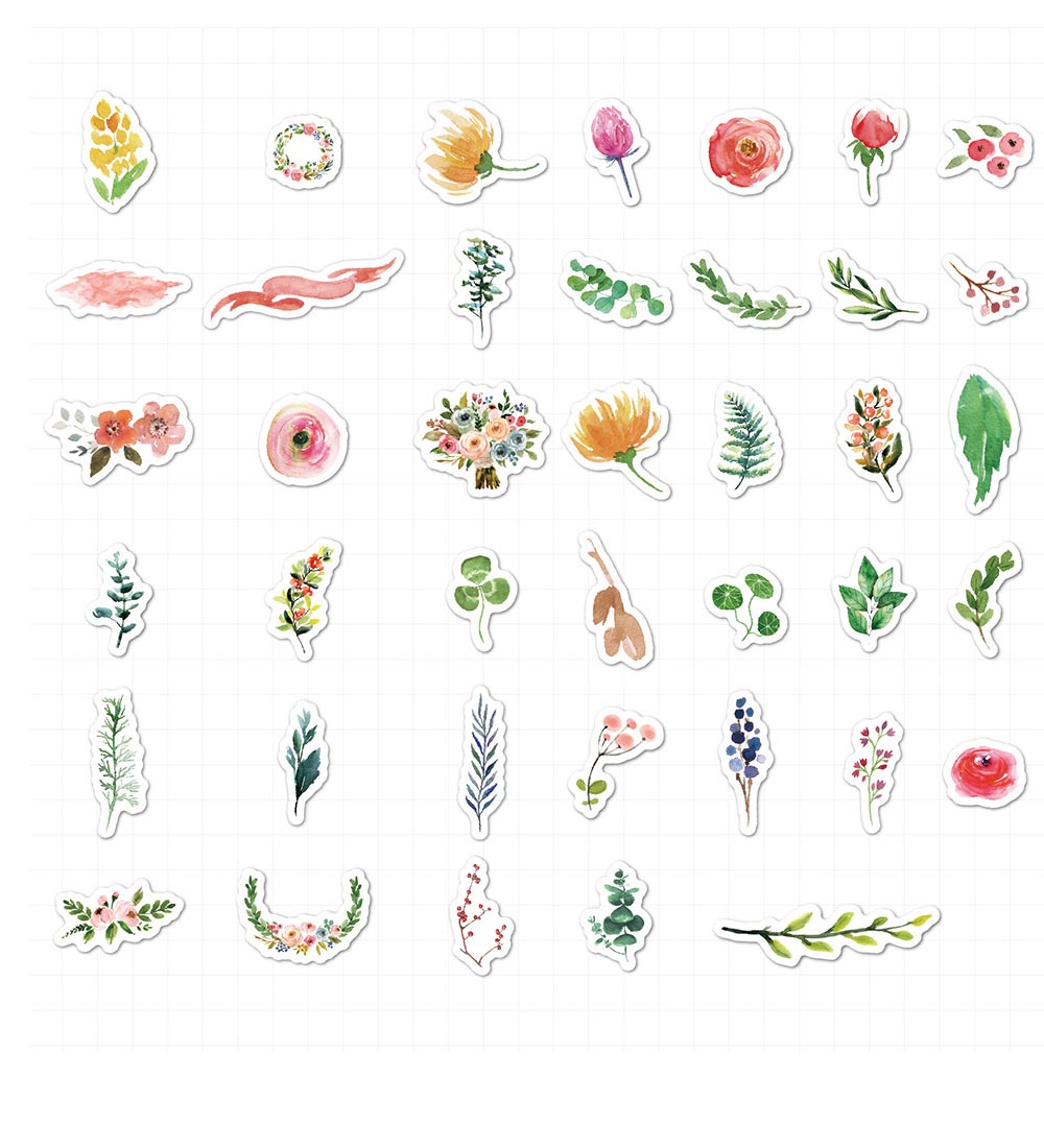 40 stuk aquarel schilderen bloem blad Cartoon stickers voor kinderen en volwassenen Beloningsstickers Journal Laptop Telefoon Stickers