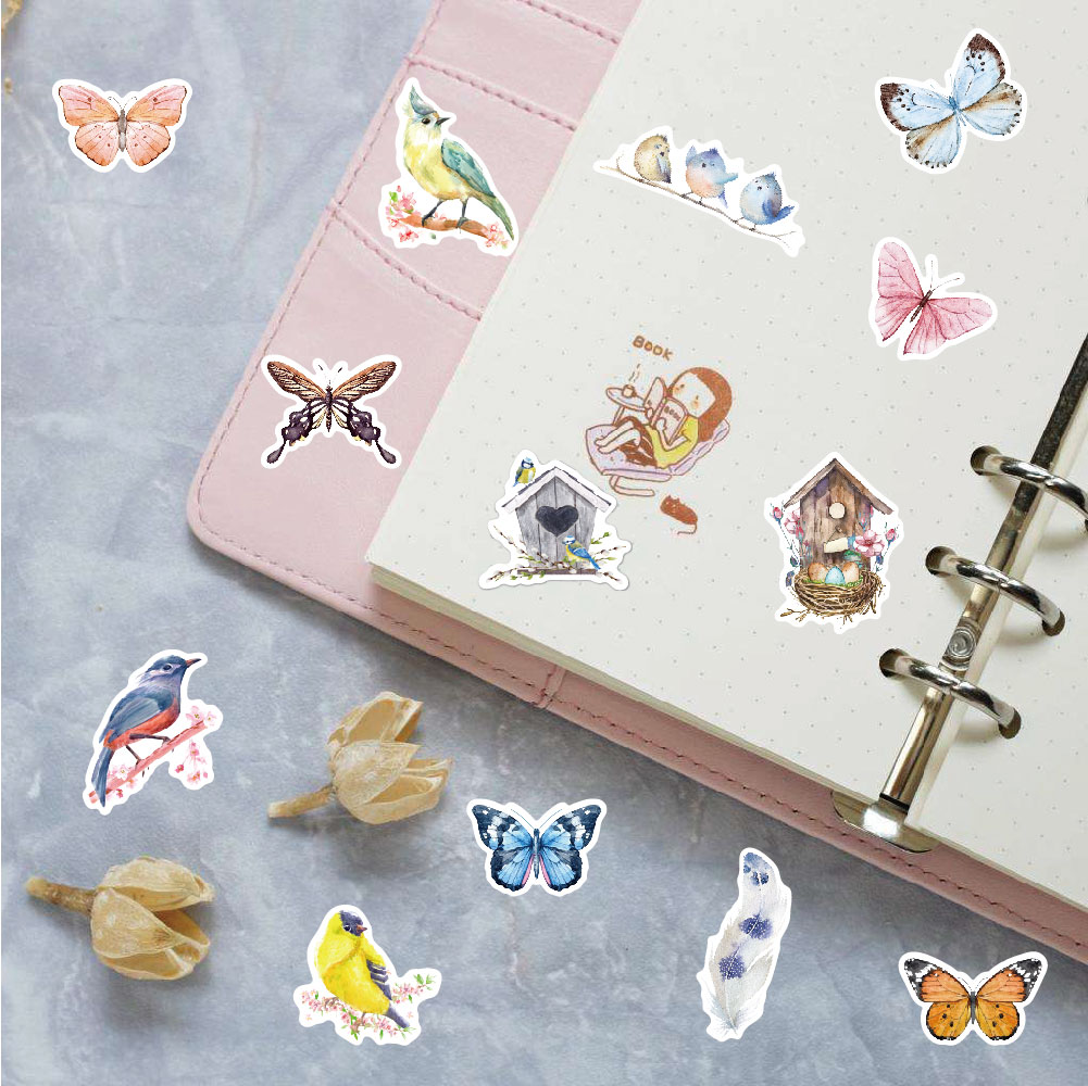 40 stuk aquarel schilderen vlinder vogel Cartoon stickers voor kinderen en volwassenen Beloningsstickers Journal Laptop Telefoon Stickers