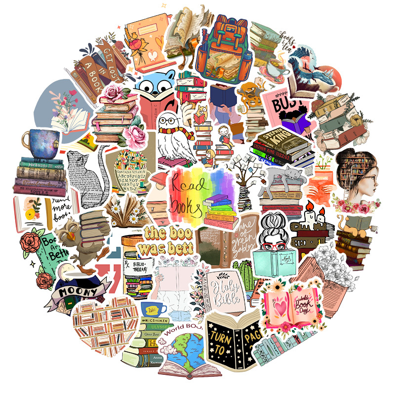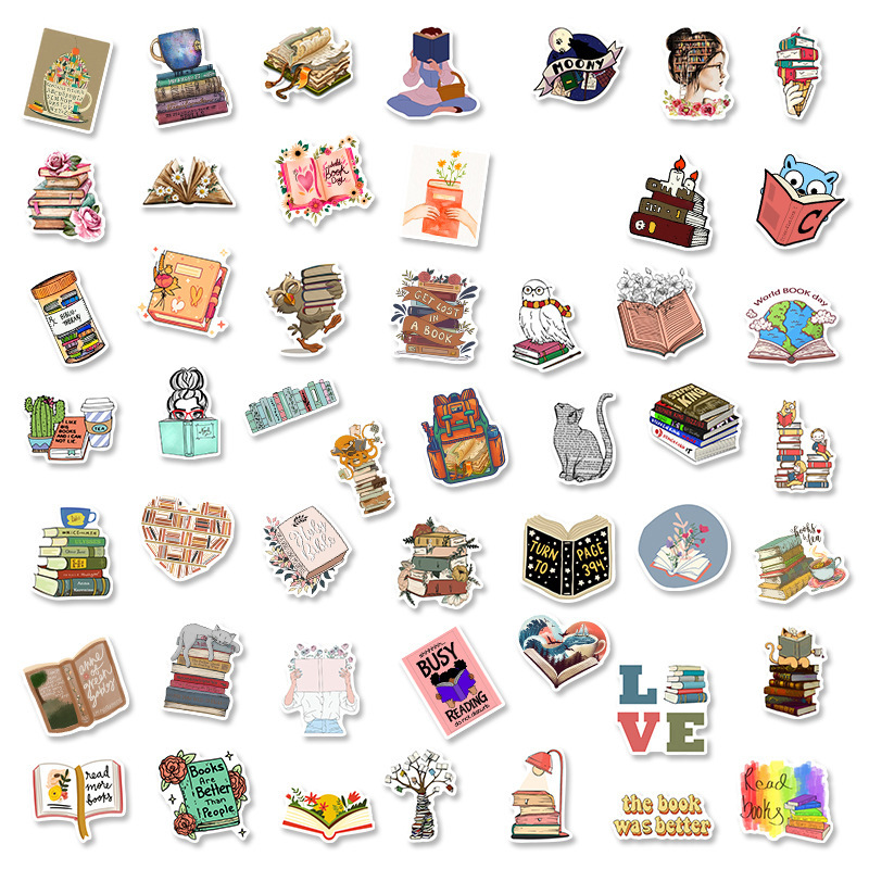 50 stuk boek lezen Cartoon stickers voor kinderen en volwassenen Beloningsstickers Journal Laptop Telefoon Stickers