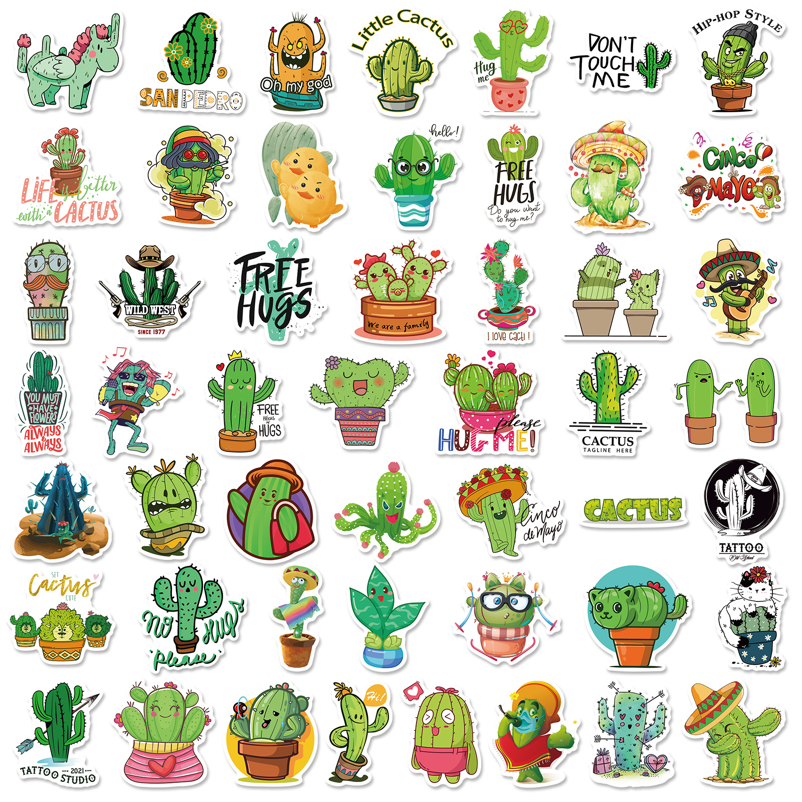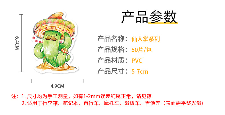 50 stuk cactus Cartoon stickers voor kinderen en volwassenen Beloningsstickers Journal Laptop Telefoon Stickers