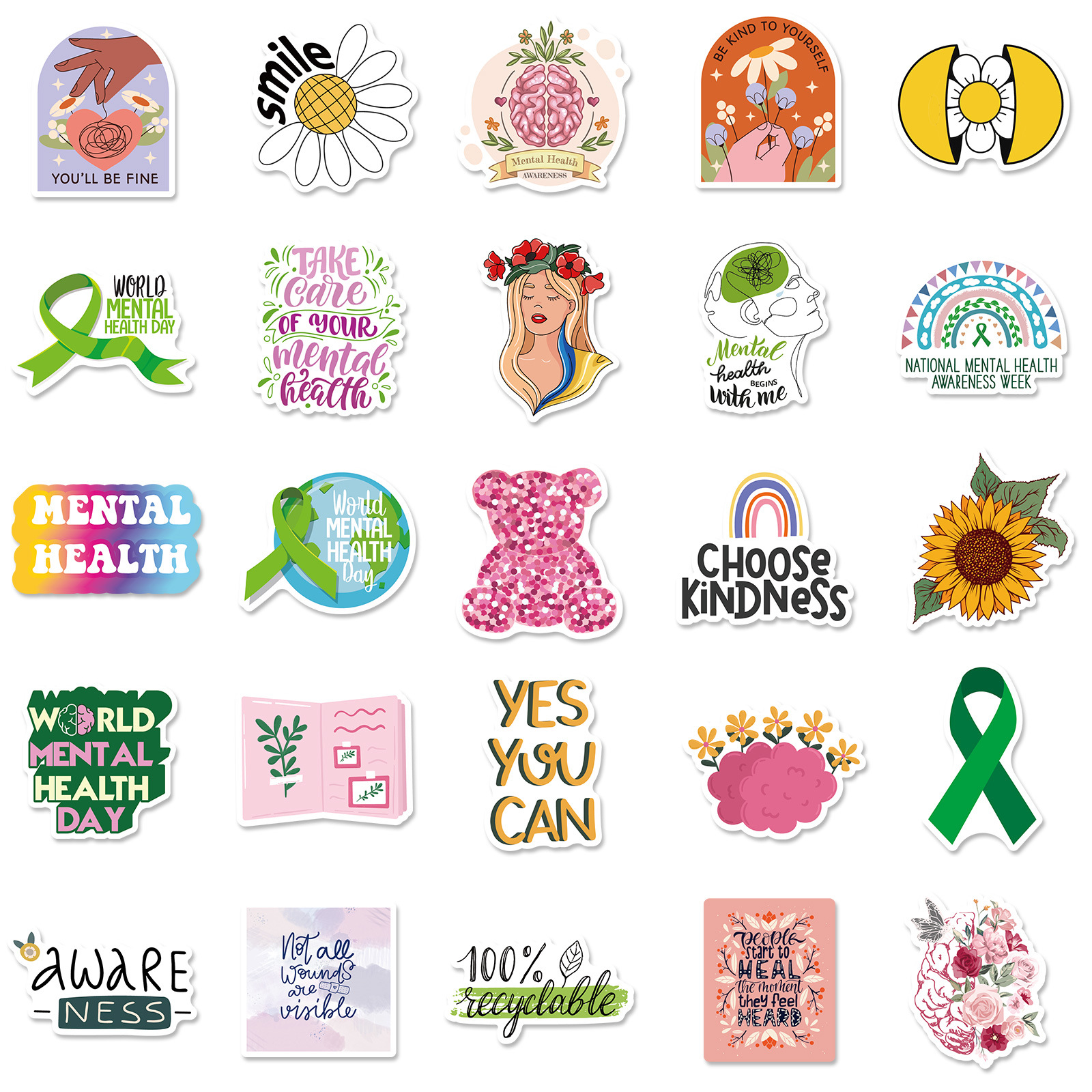 50 stuk mentale gezondheid Cartoon stickers voor kinderen en volwassenen Beloningsstickers Journal Laptop Telefoon Stickers