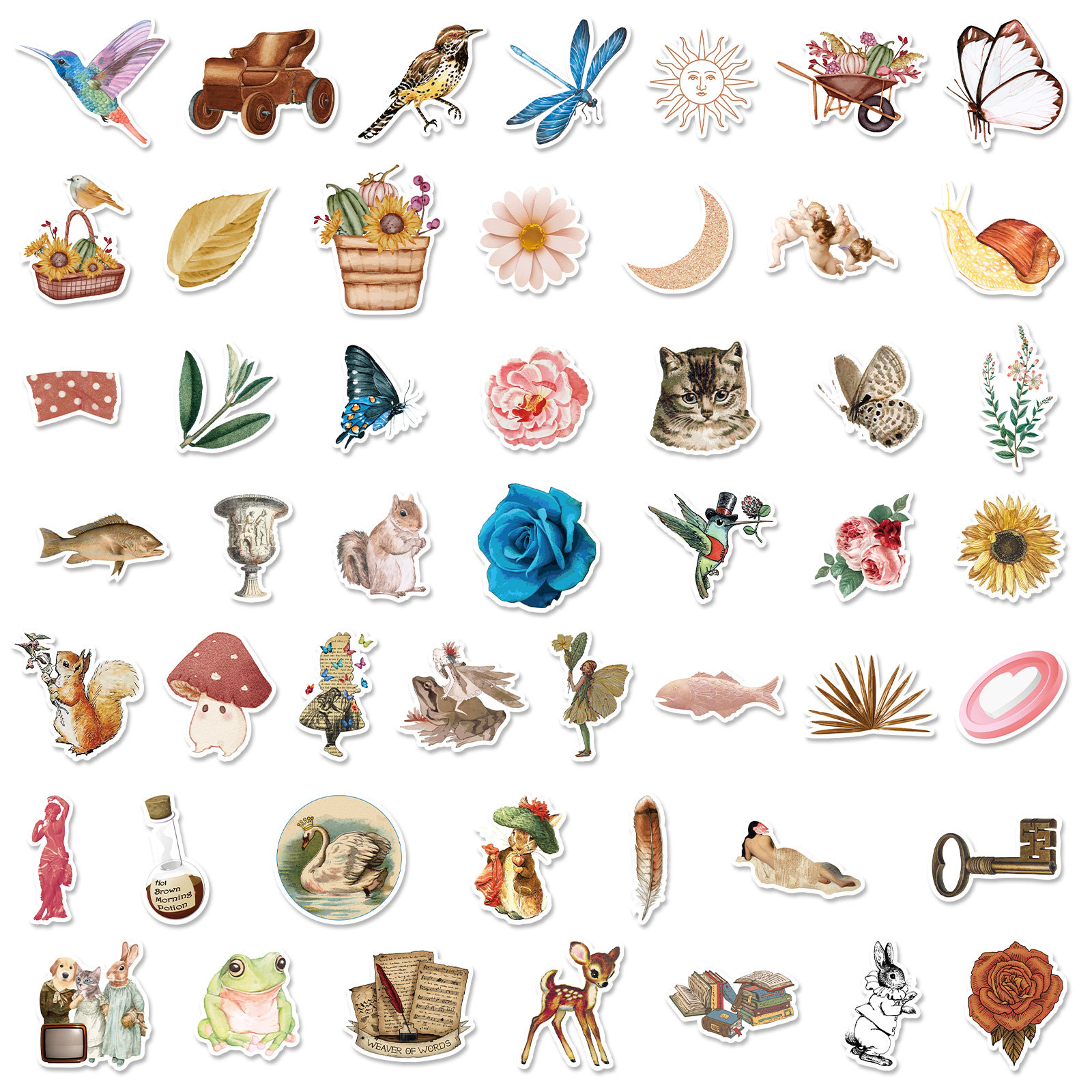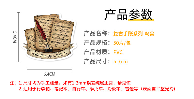 50 stuk nostalgisch retro notitieboek vogelbeest Cartoon stickers voor kinderen en volwassenen Beloningsstickers Journal Laptop Telefoon Stickers
