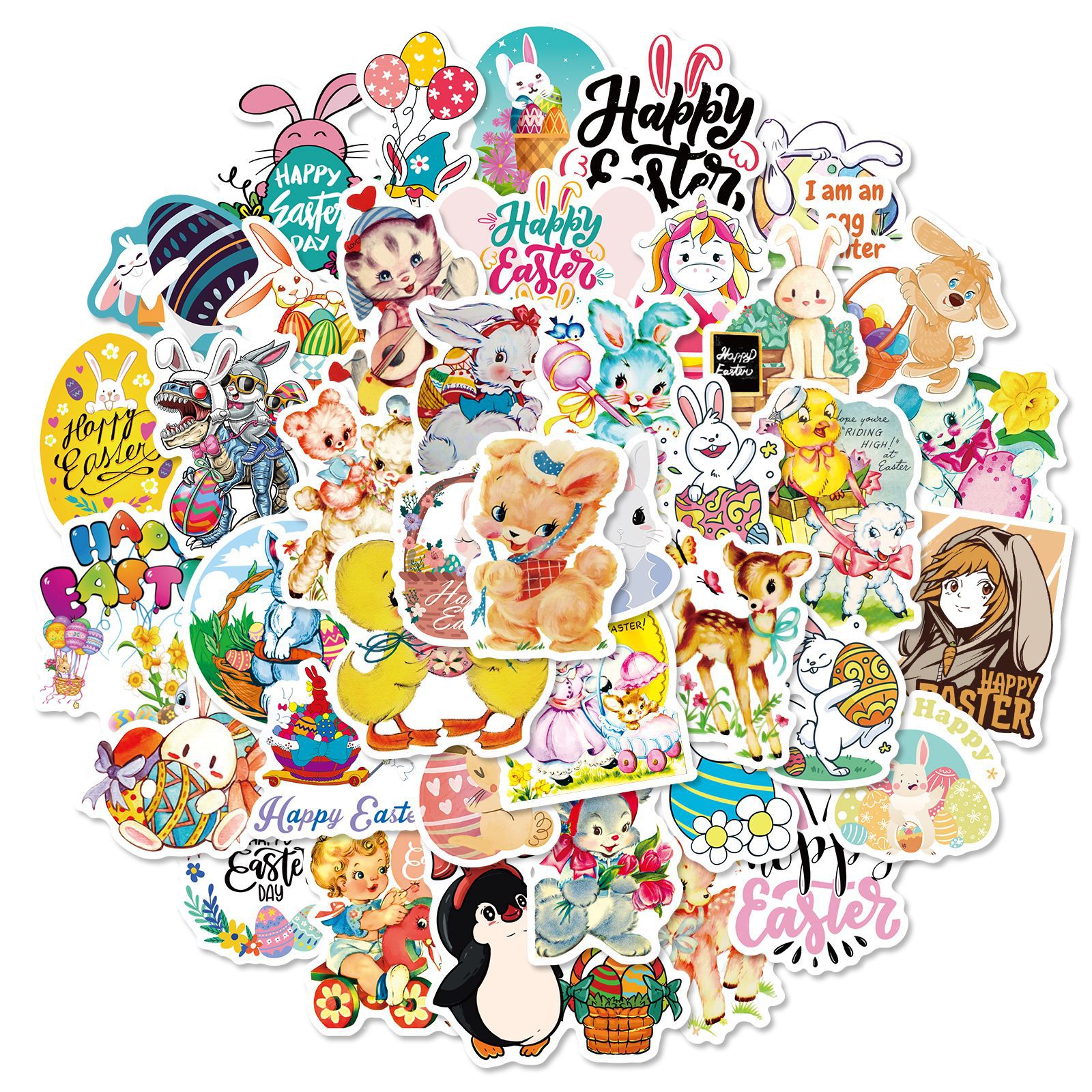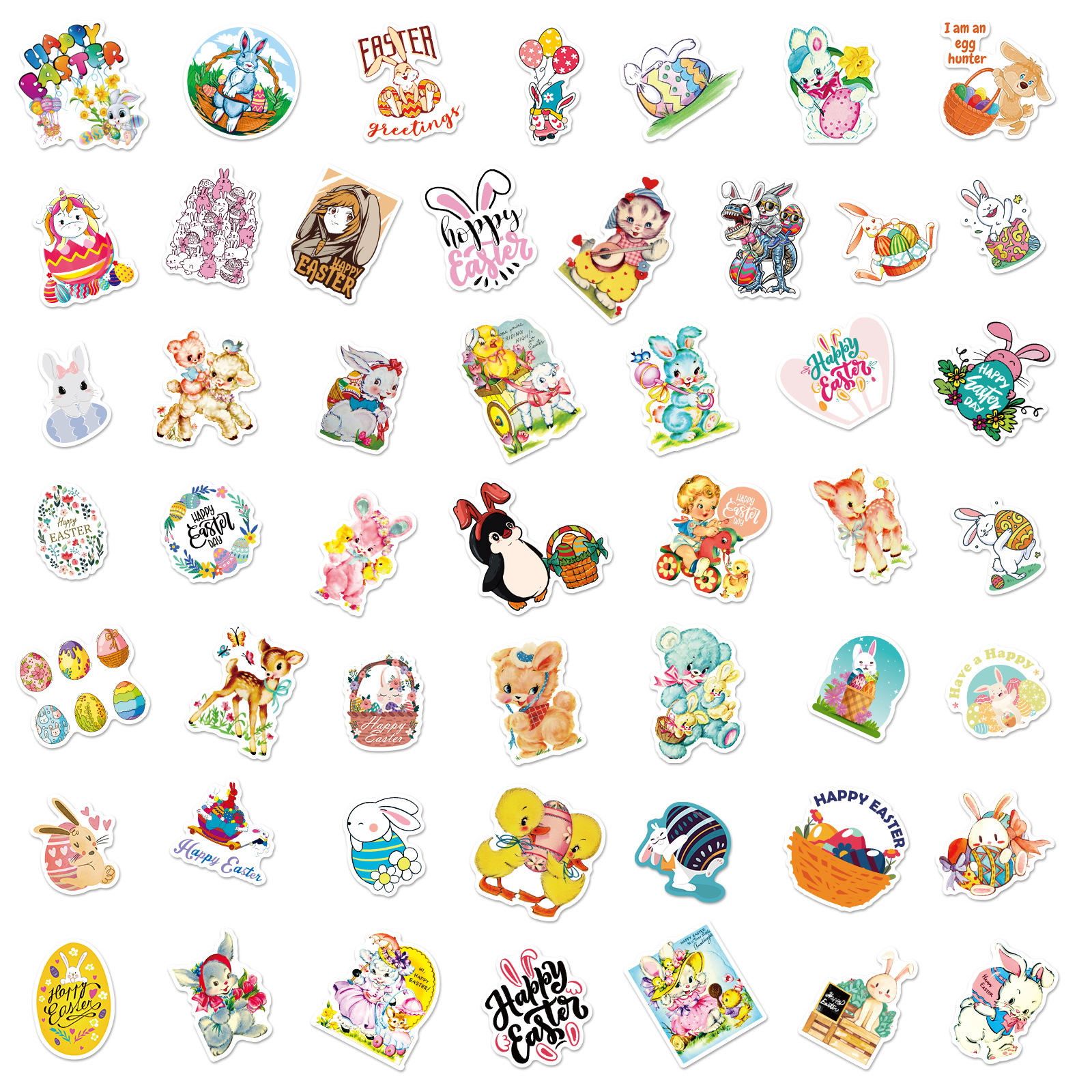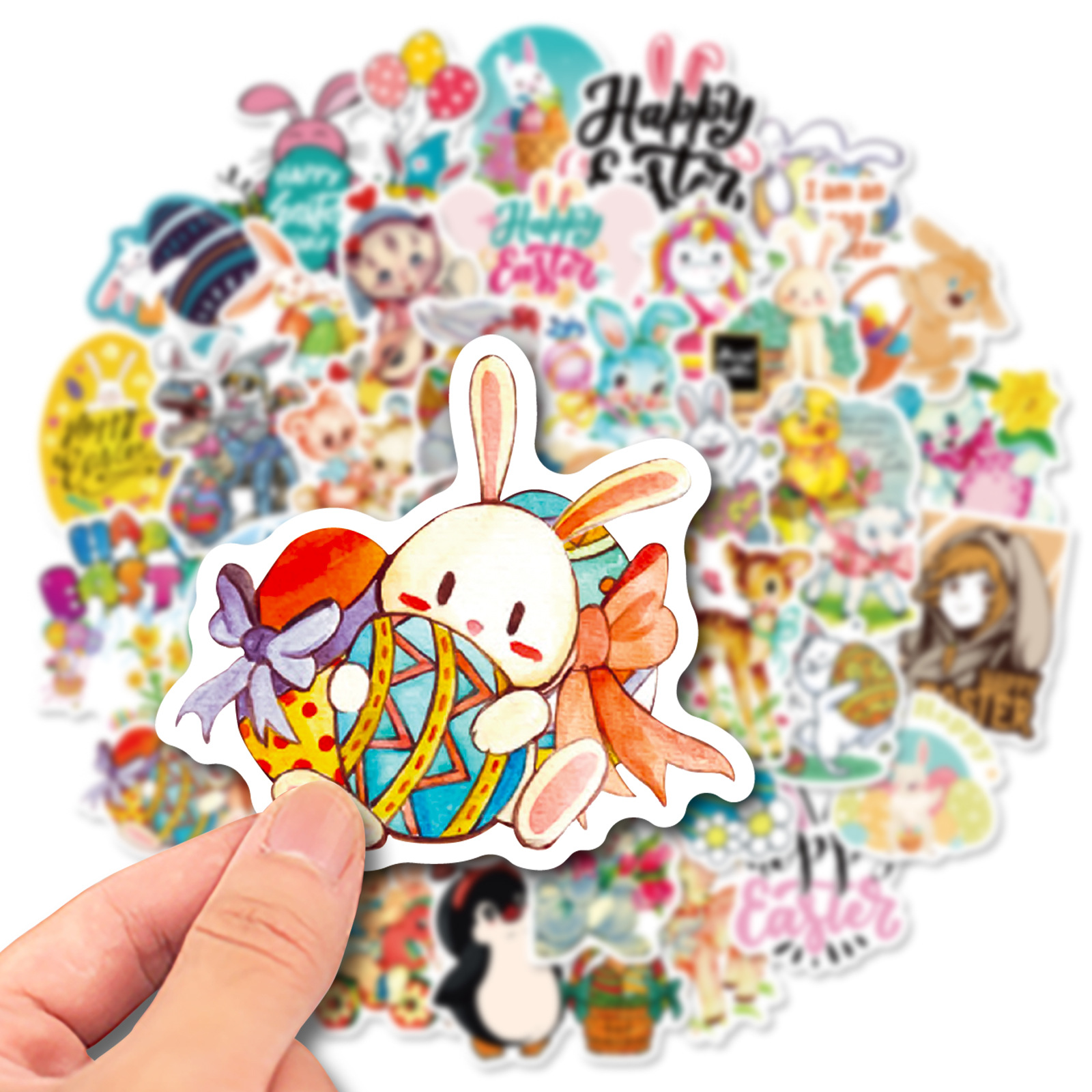 50 stuk pasen konijn eieren Cartoon stickers voor kinderen en volwassenen Beloningsstickers Journal Laptop Telefoon Stickers