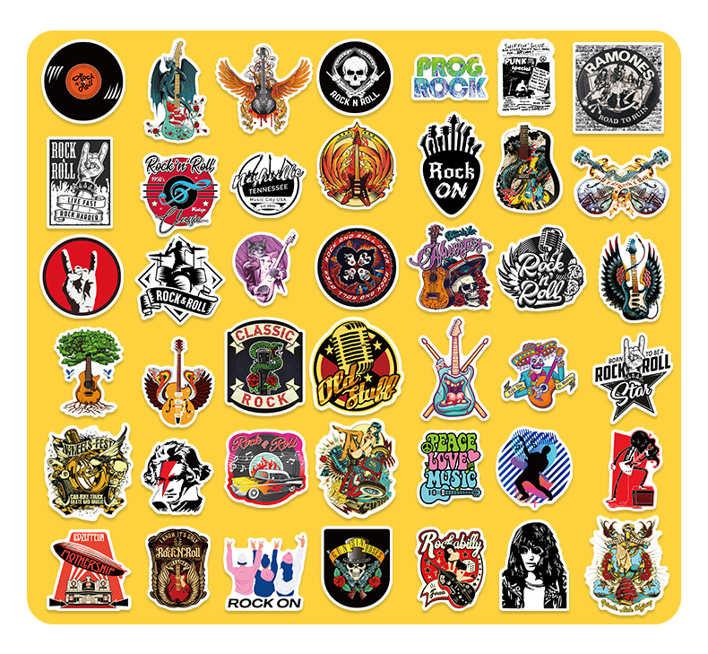 50 stuk rock muziek T01040569 elektrische gitaar Cartoon stickers voor kinderen en volwassenen Beloningsstickers Journal Laptop Telefoon Stickers