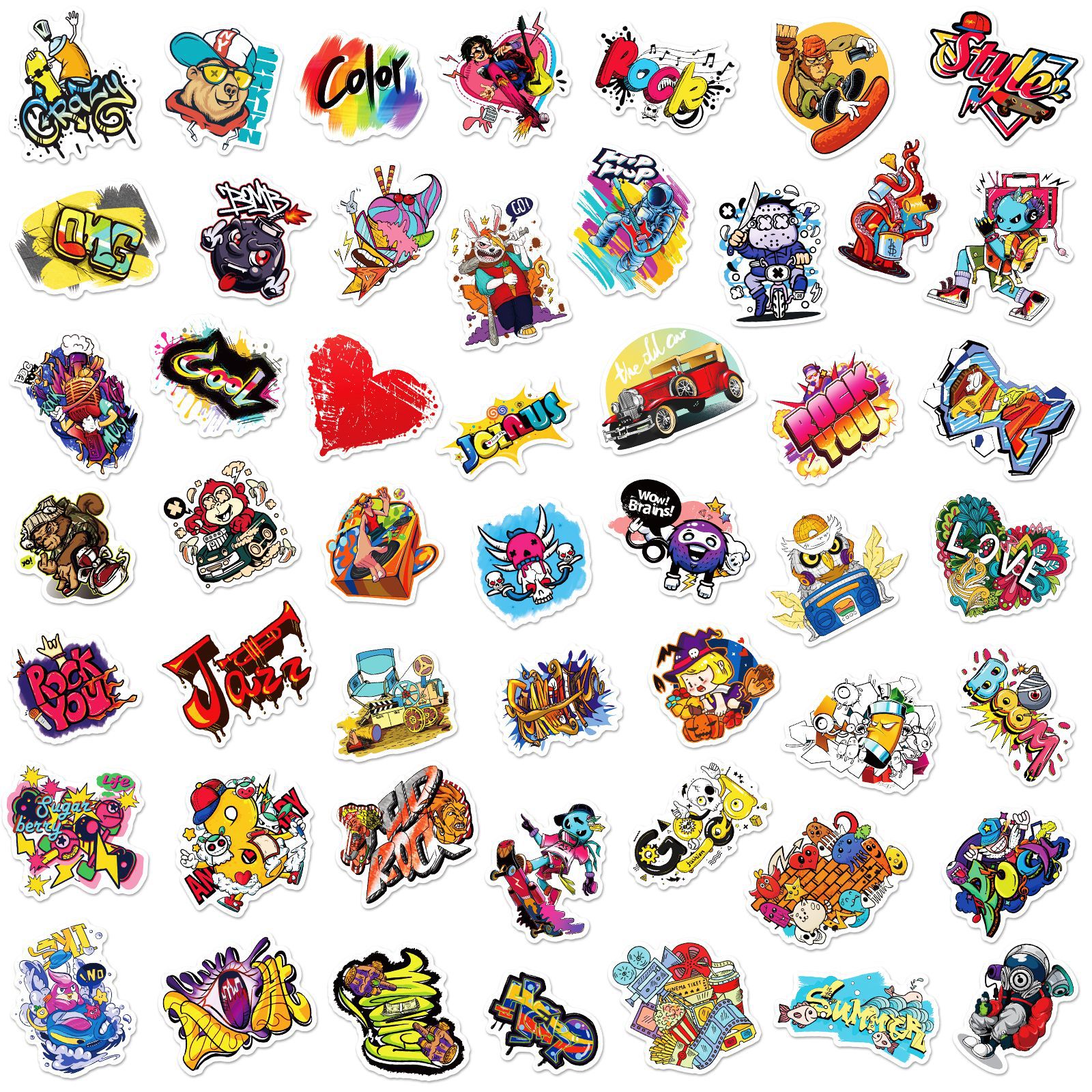 50 stuk straatkunst Cartoon stickers voor kinderen en volwassenen Beloningsstickers Journal Laptop Telefoon Stickers