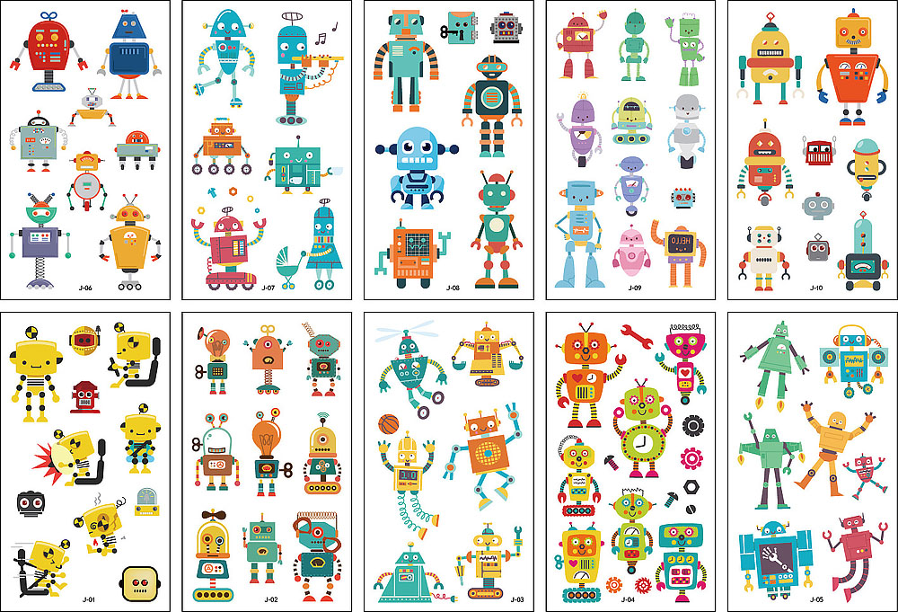 10 stuk Tattoo Sticker Gezicht Hand Cartoon Nep Tatoo Tijdelijke Waterdichte Taty model J Robot