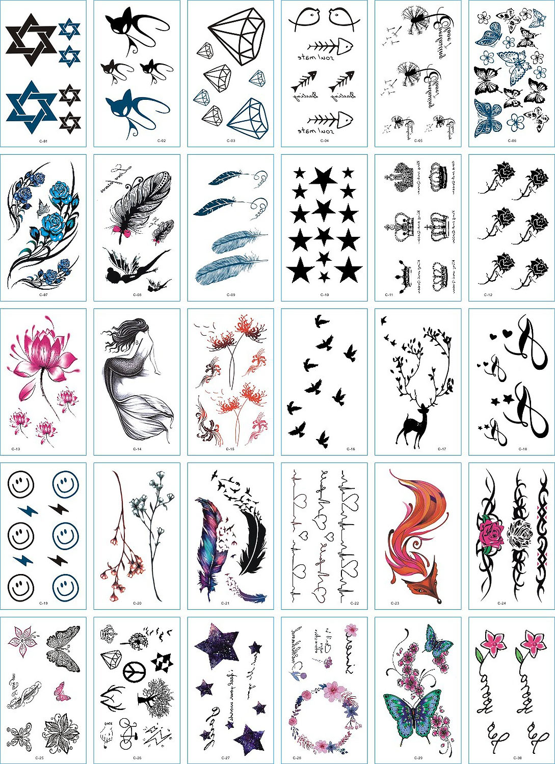 30 stuk Tattoo Sticker Gezicht Hand Mooie Body Art Nep Tatoo Tijdelijke Waterdichte Taty model C