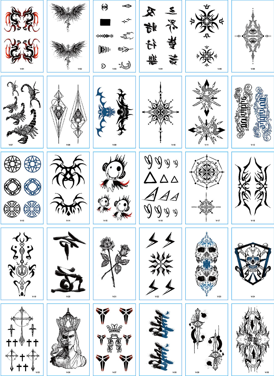 30 stuk Tattoo Sticker Gezicht Hand Mooie Body Art Nep Tatoo Tijdelijke Waterdichte Taty model V