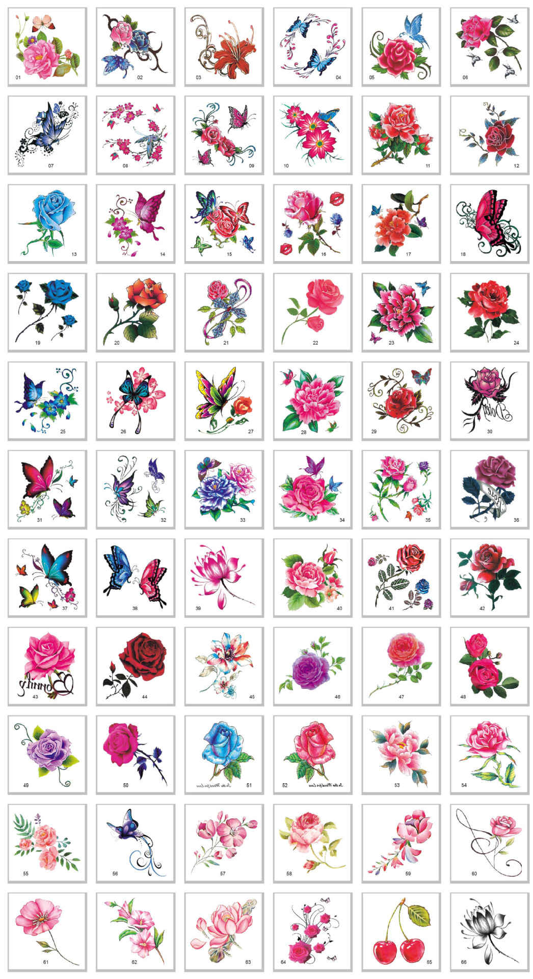 66 stuk Tattoo Sticker Gezicht Hand Mooie Body Art Nep Tatoo Tijdelijke Waterdichte Taty model Bloemen