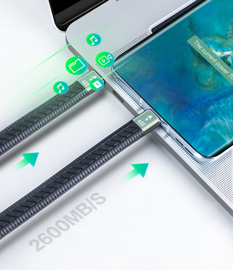 Deze Thunderbolt 3 kabel ondersteunt overdrachtssnelheden van 40Gbps wanneer aangesloten op een Thunderbolt 3 apparaat, zodat u foto en video bestanden op vier keer de snelheid van een USB 3.1 Gen 2 (10Gbps) kabel. Bijvoorbeeld, kunt u een 4K film in seconden.