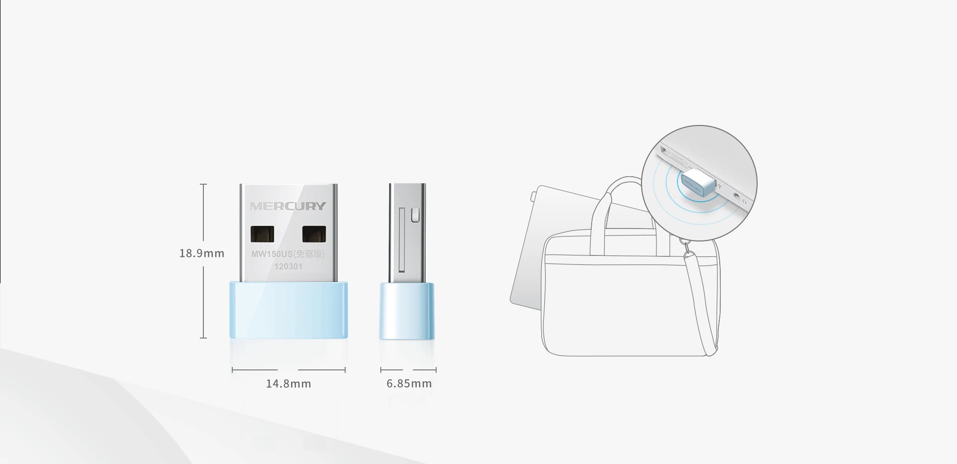 De MW150US (drive-gratis versie) keurt een ultra-kleine verschijning ontwerp, en zijn compacte body is Geïntegreerd met de laptop wanneer gebruikt. Alleen hoge kwaliteit Wifi signalen kan altijd bewijzen zijn Groot effect. De lichtblauwe shell is verse en natuurlijke, het lichaam is glad en ronde, het is comfortabel om te zien,